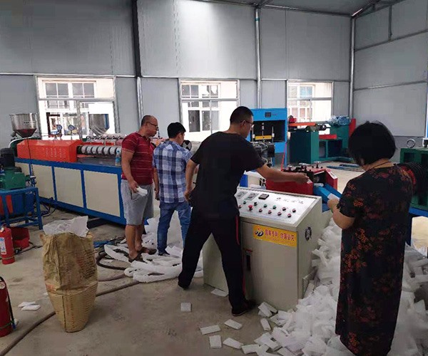 发泡网套,用于水果、蔬菜、花蕾、瓶类及其它产品的外包装。本机组采用国内外技术并结合本厂多年的实践经验研制而成,现已销往全国各地。机组人性化设计特别,操作方便,运行平稳。设备驱动采用变频控制,调速范围广、精度高、性能稳定可靠、能耗低,可节电40%左右。生产的产品发泡倍率高、外表美观、光滑、匀称、亮度好。出产品速度快、产量提高30%以上,每24小时可生产网套100万-120万个。根据市场需求,本机组配置不同的模头和辅机,可生产EPE发泡网垫、EPE发泡片材、EPE发泡管、EPE发泡棒及异型材等产品。